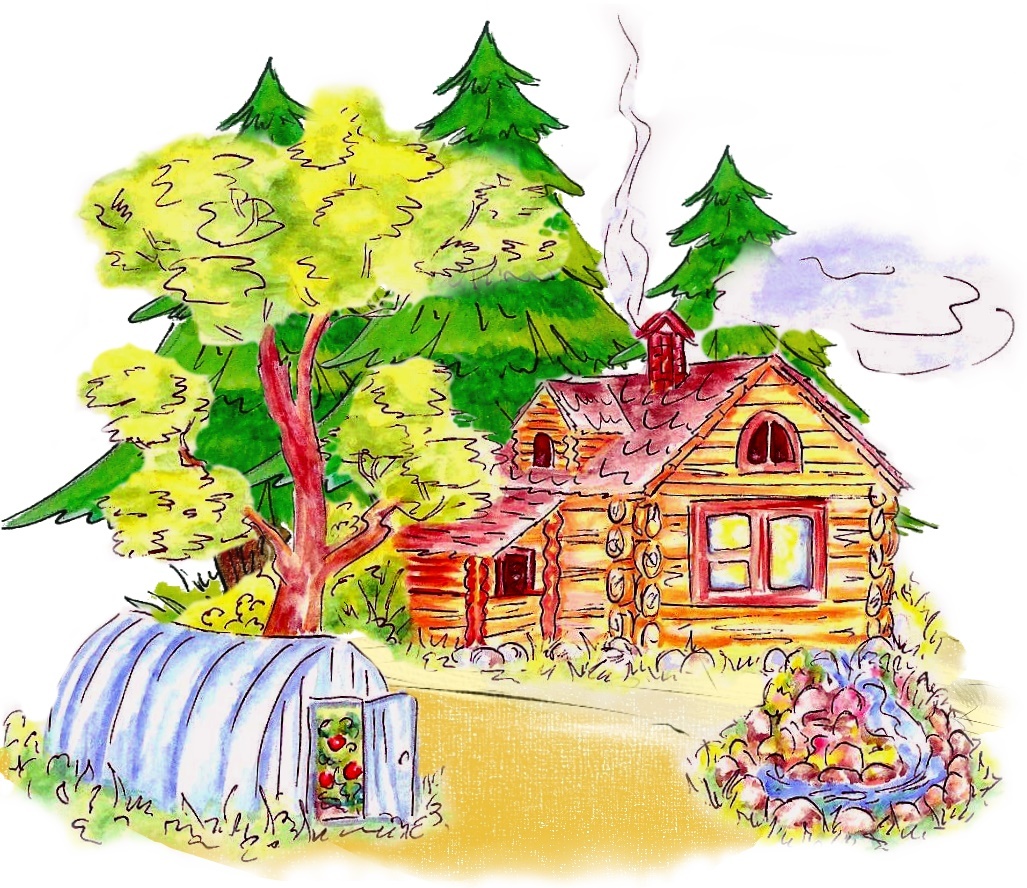 Еще на участке были баня, колодец, теплица, где росли красивые огромные овощи, небольшой пруд, чайная, теннисный стол под навесом, место для шашлыка и, как сказал папа, читальный зал, только, почему- то, очень маленький.