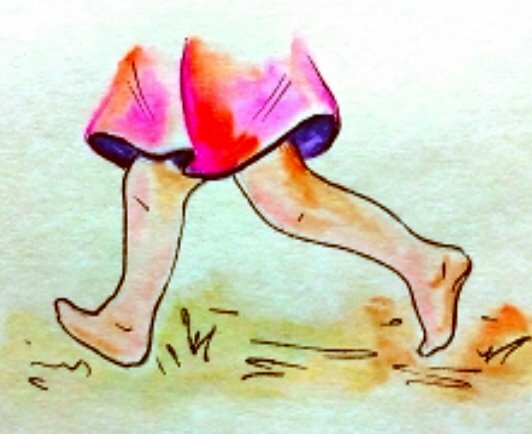 Оля весело бежит